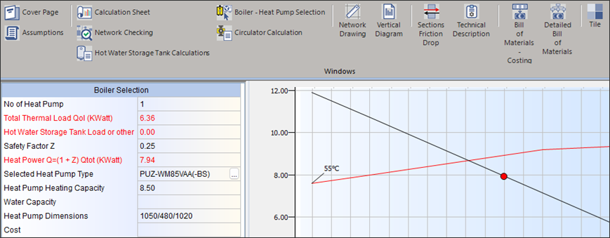 • Inverter circulator selection through detailed hydraulic calculations in the Heating and Cooling installation networks.